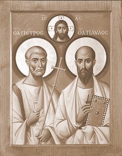 А вот икона апостолов Петра и Павла, верных первостроителей Церкви Христовой, которую врата ада не одолеют (Мф. 16.18.). И снова будто слышишь: «И познаете истину, и истина сделает вас свободными». (Ин. 8, 32). Их двойной портрет – именно так хочется назвать икону – словно воплощенный замысел Бога о человеке, зримый образ красоты свободы во Христе.