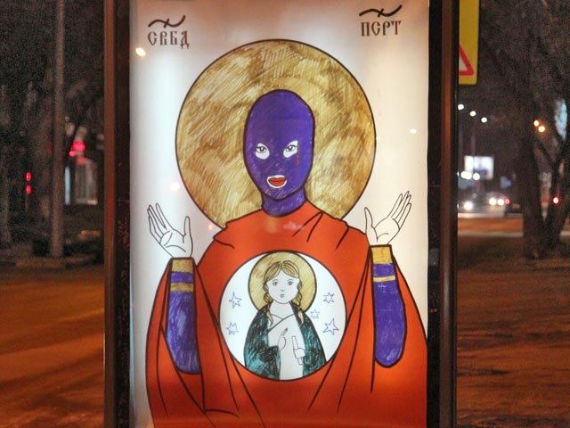 Что касается так называемой "иконы Pussy Riot", то она попала в поле зрения прокуратуры Железнодорожного района Новосибирска летом 2013 года. Речь идет об изображении, стилизованном под православный образ, выполненном новосибирским художником Артемом Лоскутовым - организатором так называемых "Монстраций" и других акций на улицах Новосибирска.