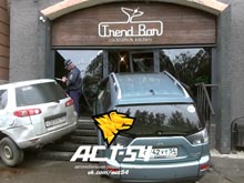 В центре Новосибирска случилось необычное ДТП: внедорожник Mitsubishi после столкновения въехал по ступенькам прямо в помещение бара. Очевидцы пишут, что за рулем была женщина, не прекращавшая говорить по телефону. Фотографии торчащего из витрины заведения Trend bar "Аутлендера" опубликованы в группе АСТ54.