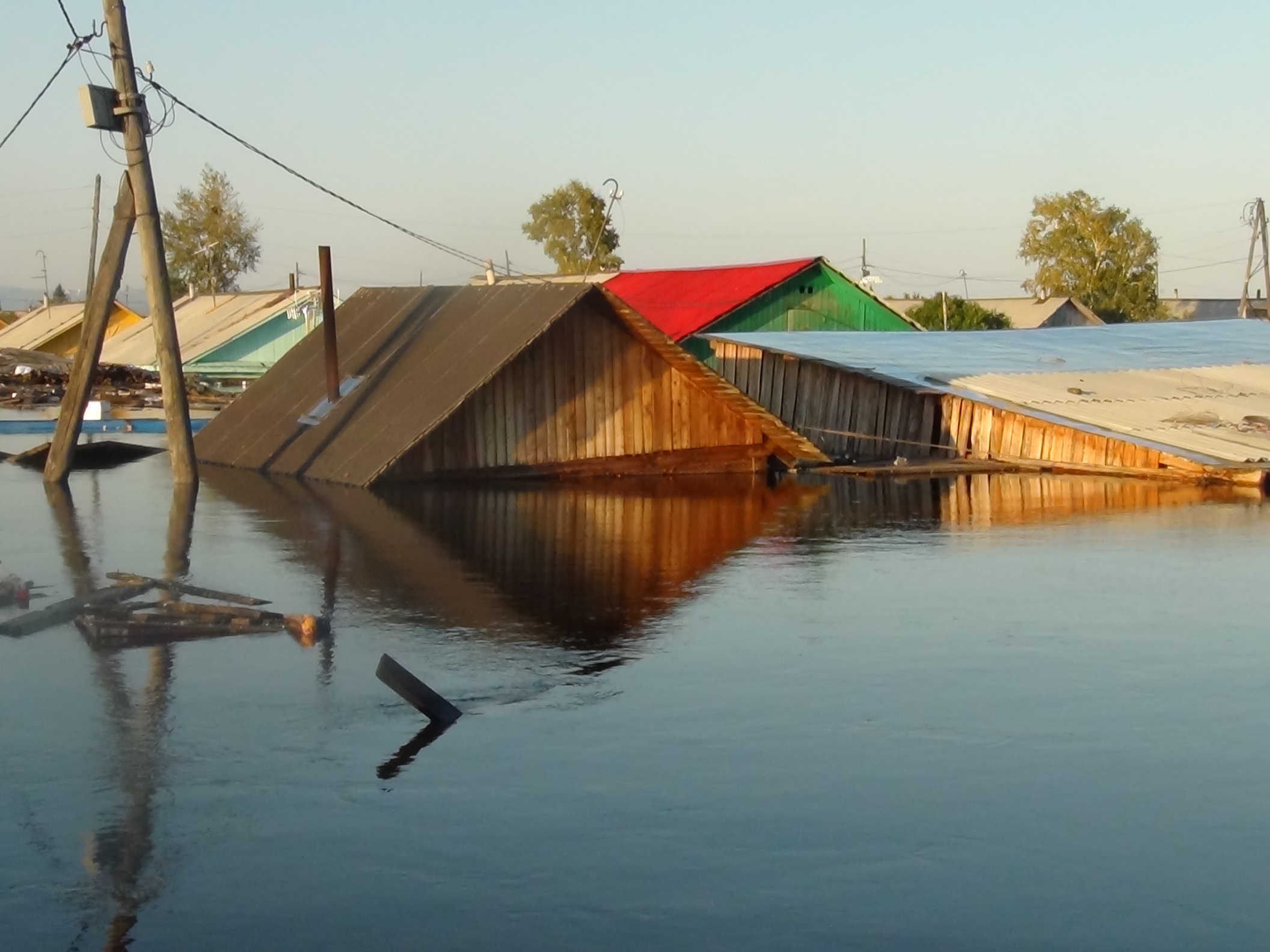 Пятачки сухой земли, сельский клуб и пара двухэтажных жилых зданий, отделенных от ближайших высотных массивов Комсомольска-на-Амуре пятью километрами водной глади, стали «ноевым ковчегом». Но, в отличие от Ноя, хорпинцы спасли каждой твари не по паре, а почти всю местную живность.Проплывая в середине сентября на лодке над административной территорией поселка Хорпинского, в мутной глубине я уже почти не увидел парников, собачьих будок, курятников, поленниц. За три прошедших недели имущество с сотен частных подворий разнесло амурской водой в неизвестных направлениях. Словно парусники, носятся по окрестностям конструкции теплиц. Под водой еще можно разглядеть очертания крупных хозяйственных сооружений, но и многие основательные постройки уже сорвало с фундаментов.