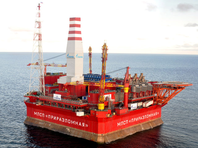 Нефтедобывающая морская платформа "Приразломная" установлена на шельфе Печорского моря и готовится к началу эксплуатации. Извлекаемые запасы Приразломного месторождения нефти оцениваются в 72 млн тонн. На полную мощность ледостойкая стационарная платформа должна выйти через семь лет.