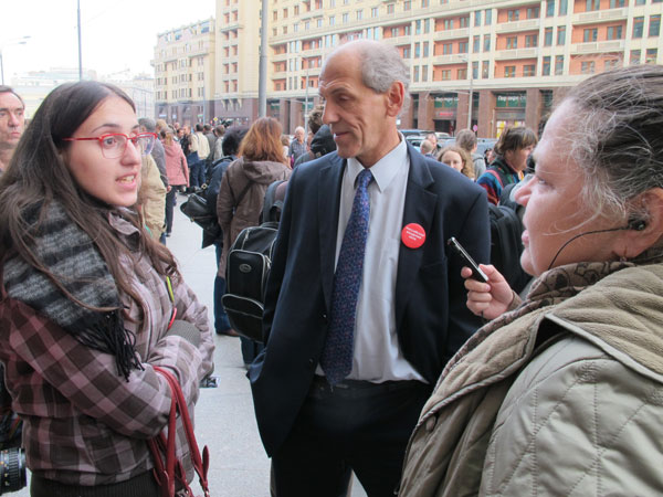 Поддержать честь Академии в два дня "стояния" у Госдумы пришли ученые разных возрастов и титулов. В центре - академик В. Рубаков Фото Н. Деминой «Реформа идиотская, но и современный status quo Академии дурацкий. И еще коммунисты подтянулись и смотреть на них противно. С другой стороны, реформа настолько дурацкая, что пришлось сюда прийти. Вот собственно и весь мой комментарий», – сказал мне профессор МГУ, победитель конкурса мегагрантов биолог Алексей Кондрашов в день первого «стояния» у Госдумы 17 сентября 2013 года.