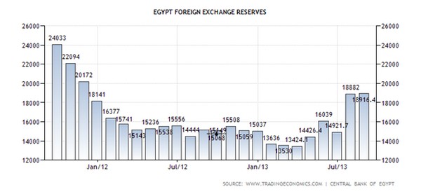 Ситуация усложняется еще и ростом доходности египетских госбумаг. 25 июля 2013 года правительство Египта разместило два выпуска краткосрочных облигаций: с погашением через 1 год под 13,82% и 6 месяцев под 13,32%. Сейчас данный показатель в Египте один из самых высоких в мире, что ложится дополнительным финансовым бременем на государство.