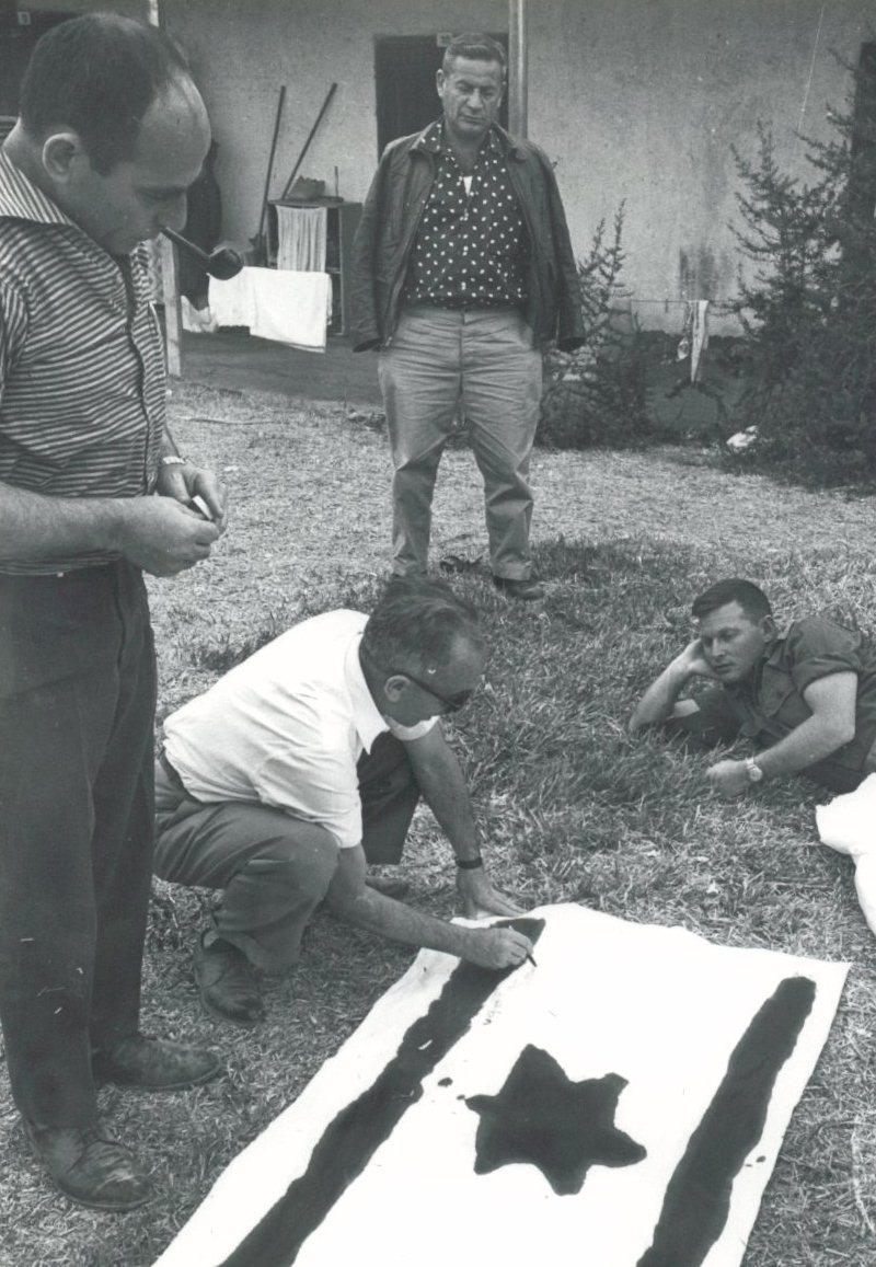 Перед выходом в путь неожиданно выяснилось, что в штабе бригады нет подходящего такому случаю национального флага Израиля. И тогда комбриг приказал писарю штаба Пуа Арэль срочно изготовить флаг из подручных средств. 18-летняя Пуа Арэль не растерялась: она взяла белый холст, синими чернилами нарисовала две продольные полосы. В качестве Маген Давида она отодрала от сумки с полевой аптечкой красную шестиконечную звезду и, закрасив ее синими чернилами, закрепила ее в центре самодельного флага.
