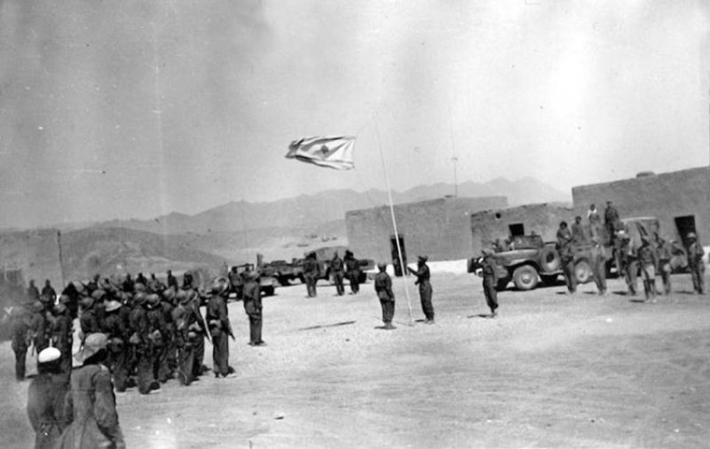 Церемония подъема “Чернильного флага” прошла в четыре часа пополудни. Однако он недолго реял над заливом – уже в пять часов к Умм-Рашраш подошли подразделения бригады Голани. У голанчиков был стандартный флаг Израиля и вскоре была проведена повторная церемония подьема флага Израиля с участием бойцов обеих бригад.