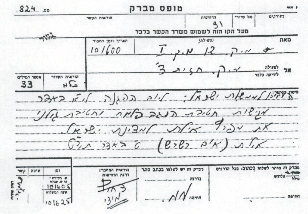 Командиры бригады Негев Нахум Сариг и бригады Голани Нахум Голан подписали радиограмму правительству Израиля: