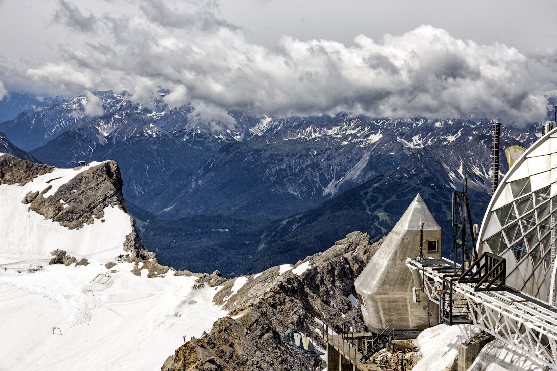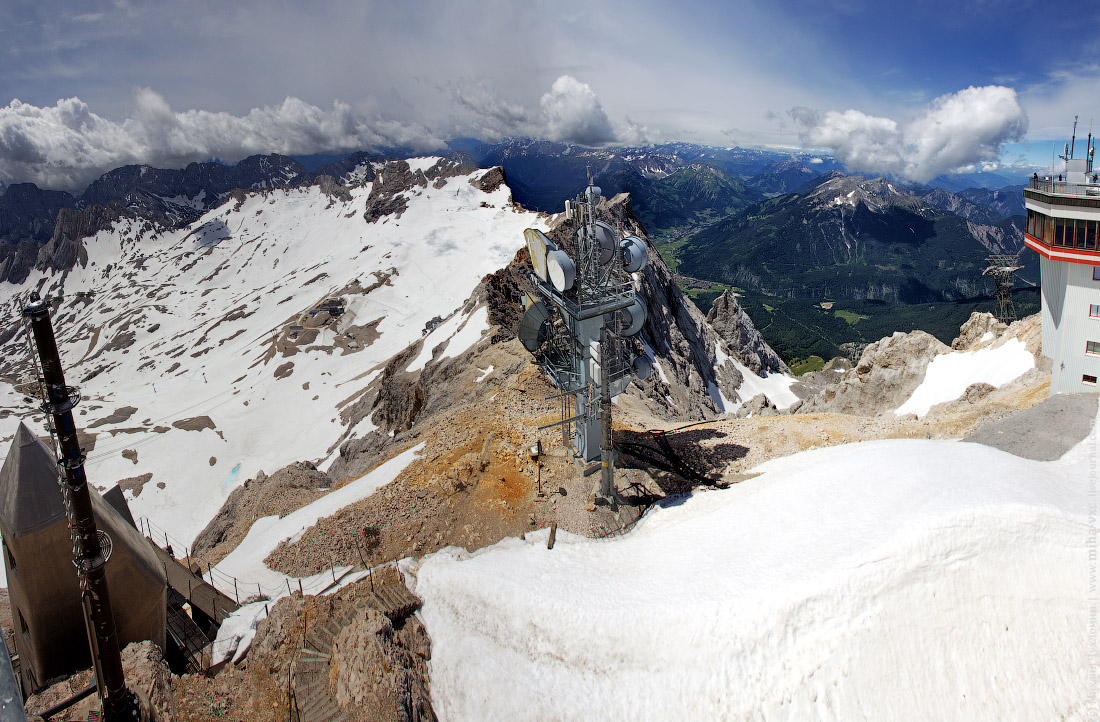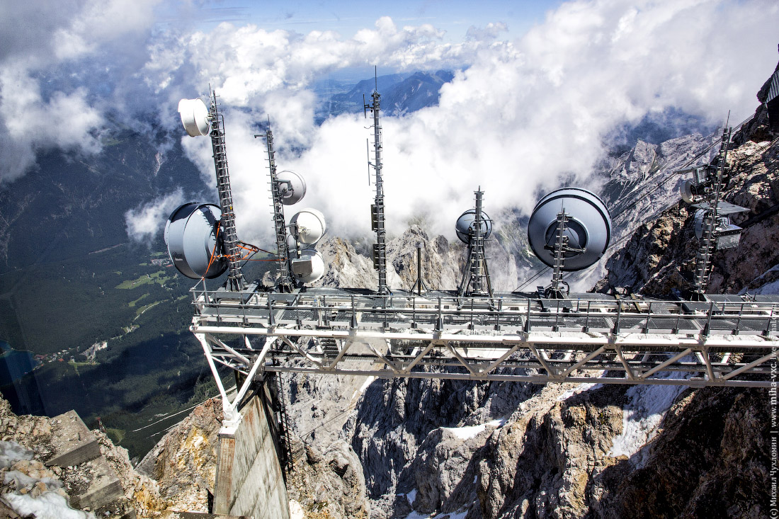 4. Так как гора расположена прямо на границе стран, то на сотовый телефон постоянно приходят смс "Добро пожаловать в Германию/Австрию". На склонах горы установлено много оборудования.