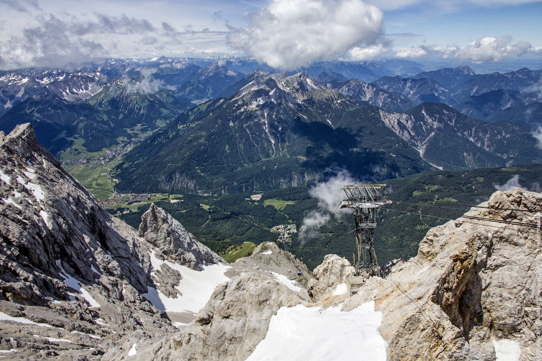 Гора Цугшпитце — самая высокая точка на территории Германии, ее высота — 2962 м. Цугшпитце расположена прямо на границе Германии и Австрии.