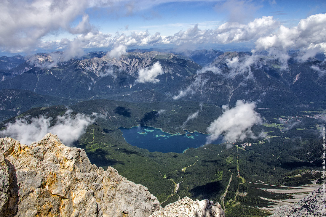 3. А это уже немецкая сторона. Озеро Айбзее, после подъема на гору мы отправились к нему кататься на лодке. А также вдали виднее Гармиш-Партенкирхен.