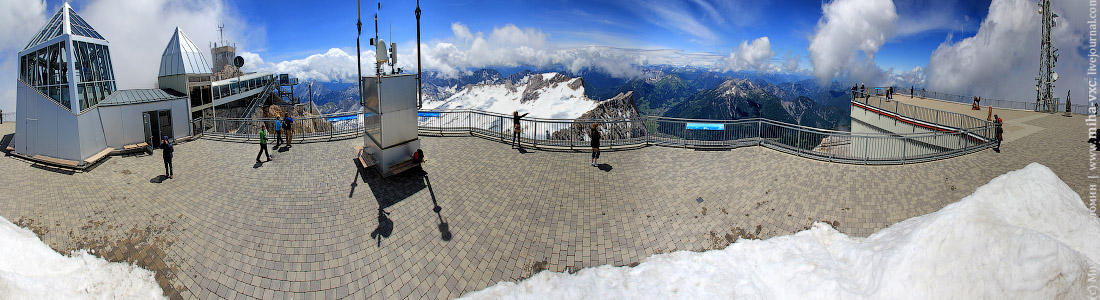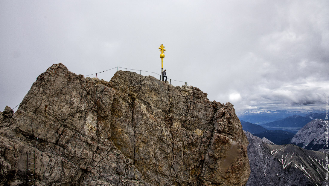 2. Мы поднимались со стороны Германии, а с другой стороны горы уже видна Австрия, а в хорошую погоду и Италия.