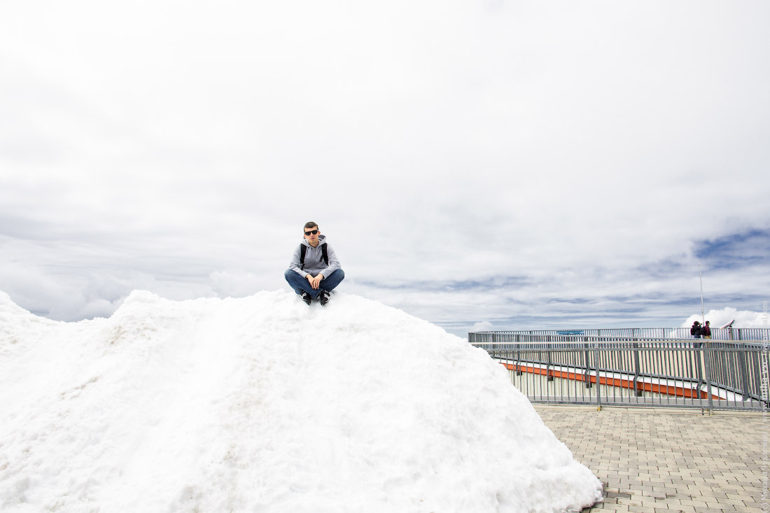 12. В центре обзорной площадки навалили снежную горку, очень необычно летом посидеть на снегу.