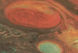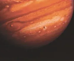 1979 год — оба аппарата пролетают Юпитер, совершая гравитационный маневр. Помимо всего прочего, впервые крупнейшая планета изучается с близкого расстояния (рис.4). «Вояджеры» увидели слабое кольцо у планеты (рис. 5), вулканы на Ио (рис.6), сфотографировали знаменитое Большое Красное Пятно с близкого расстояния (рис. 7), открыли три новых спутника — Адрастею, Фиву и Метиду.