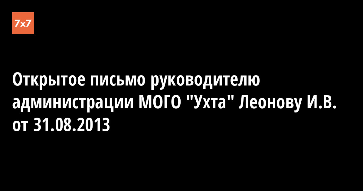 Открытое письмо руководителю администрации МОГО "Ухта" Леонову И.В. от 31.08.2013