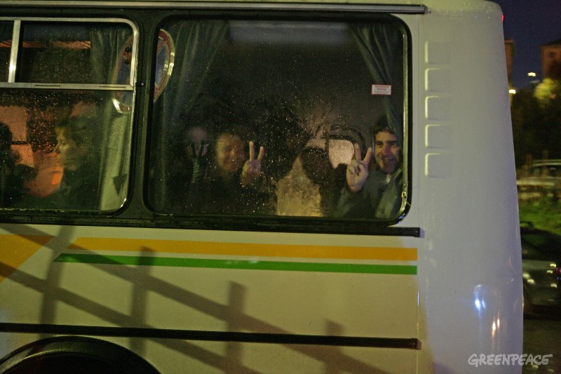 По данным Гринпис, 24 сентября около 19:30 команде Арктик Санрайз было приказано собраться в течение пяти минут и быть готовыми к перевозке на берег. Место назначения не сообщалось. Позднее стало известно, что активистов везут в мурманский Следственный комитет. Вчера в Мурманск прибыли около 16 следователей, в том числе и из других городов.