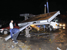 "Ураганный ветер пронесся по городу, оставив после себя многочисленные следы, десятки поваленных деревьев и разбитые машины. У роддома снесло крышу", - сообщается на сайте администрации Сочи.
