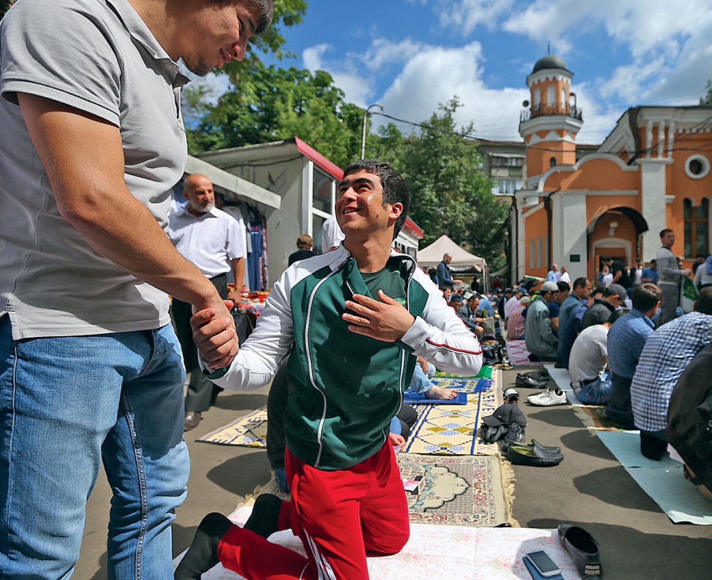 Когда мэр Москвы Сергей Собянин пообещал в начале лета навести порядок на столичных рынках, за этим последовали не только массовые задержания мигрантов, но и массовые же закрытия молельных комнат и мечетей. «Нам нужно намаз читать пять раз в день, — объяснил The New Times Хаджи-Мурат, приехавший еще в 90-х из Таджикистана, владелец халяльного***** кафе на одном из московских рынков. — В мечети обязательно быть только в пятницу — на проповеди, в обычные дни можно молиться где угодно, но все равно лучше молиться вместе». Торговцы на рынках скидывались и снимали отдельные павильоны для молельни, где в большинстве случаев стояли камеры, чтобы ни у кого не возникало вопросов. Но за последние три месяца администрации большинства рынков расторгли контракты на аренду молельных павильонов и молиться запретили. «Администрации все равно, там горские евреи заправляют, — говорит Хаджи-Мурат. — Им позвонили из ФСБ, они тут же отреагировали. Да что там рынки! У меня дом за городом, мы праздновали Ураза-Байрам, сидели несколько семей, человек двадцать, дети, женщины... Тут приходит вдруг участковый проверять документы, говорит, была наводка, что у нас тысяча радикалов собралась. Я показываю ему, что нет радикалов, есть только дети. Он проверяет паспорта и уходит, но праздник испорчен. Как так можно прийти к кому-то домой без ордера, без всего? Хорошо еще, что хоть вежливый попался».