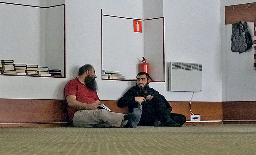 Сама мечеть — белое двухэтажное здание за высоким забором: небольшая прихожая с этажерками для обуви и ящиком для садаки (пожертвований), оборудованная для омовений уборная, устланная зеленым ковролином молельная комната с деревянным минбаром (кафедрой) и книгами в нишах (Коран на арабском и русском, его толкования и другая религиозная литература). В ожидании имама пришедшие рассаживаются на полу по-турецки, берут Коран, читают молитвы, беззвучно шевеля губами. Пришедший с отцом пятилетний мальчик подходит к незнакомому пожилому мужчине, будит его: «Эй, дядя, здесь нельзя спать».