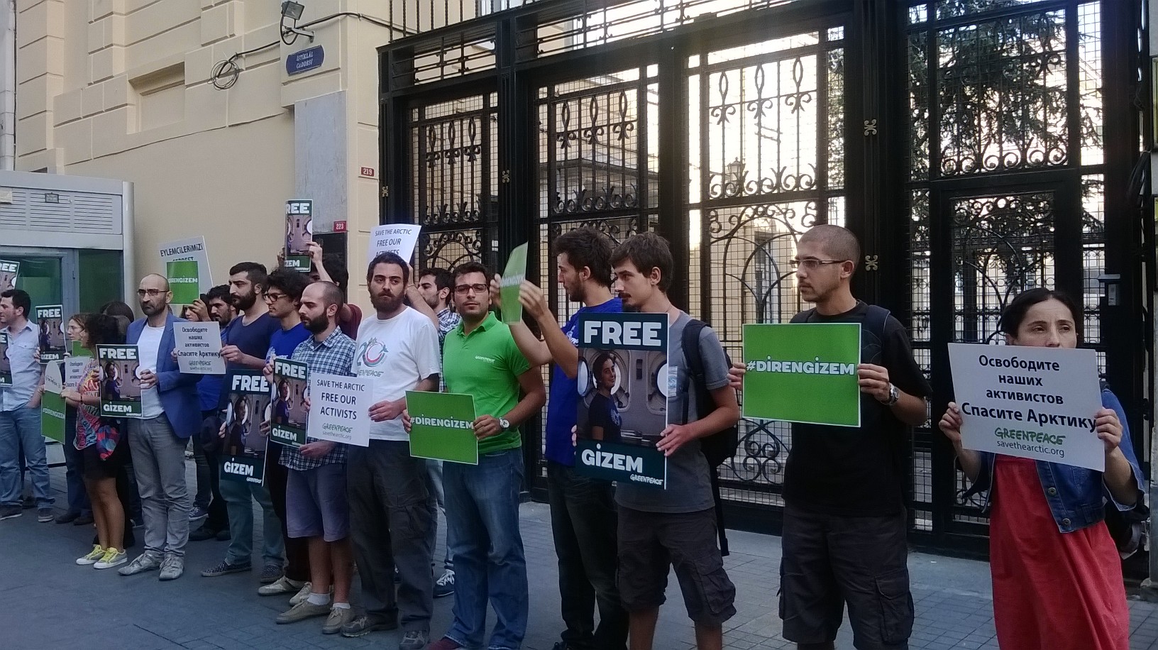 Уже несколько дней активисты "Гринпис" устраивают молчаливые акции протеста у здания российского консульства в Стамбуле с требованием освободить Гизем Акхан, двадцатичетырехлетнюю активистку, которая находится в российской тюрьме вместе с другими экологами. Количество протестующих возросло до ста человек. Рассказывает секретарь средиземноморского отделения "Гринпис" Гюльчин Шахин: