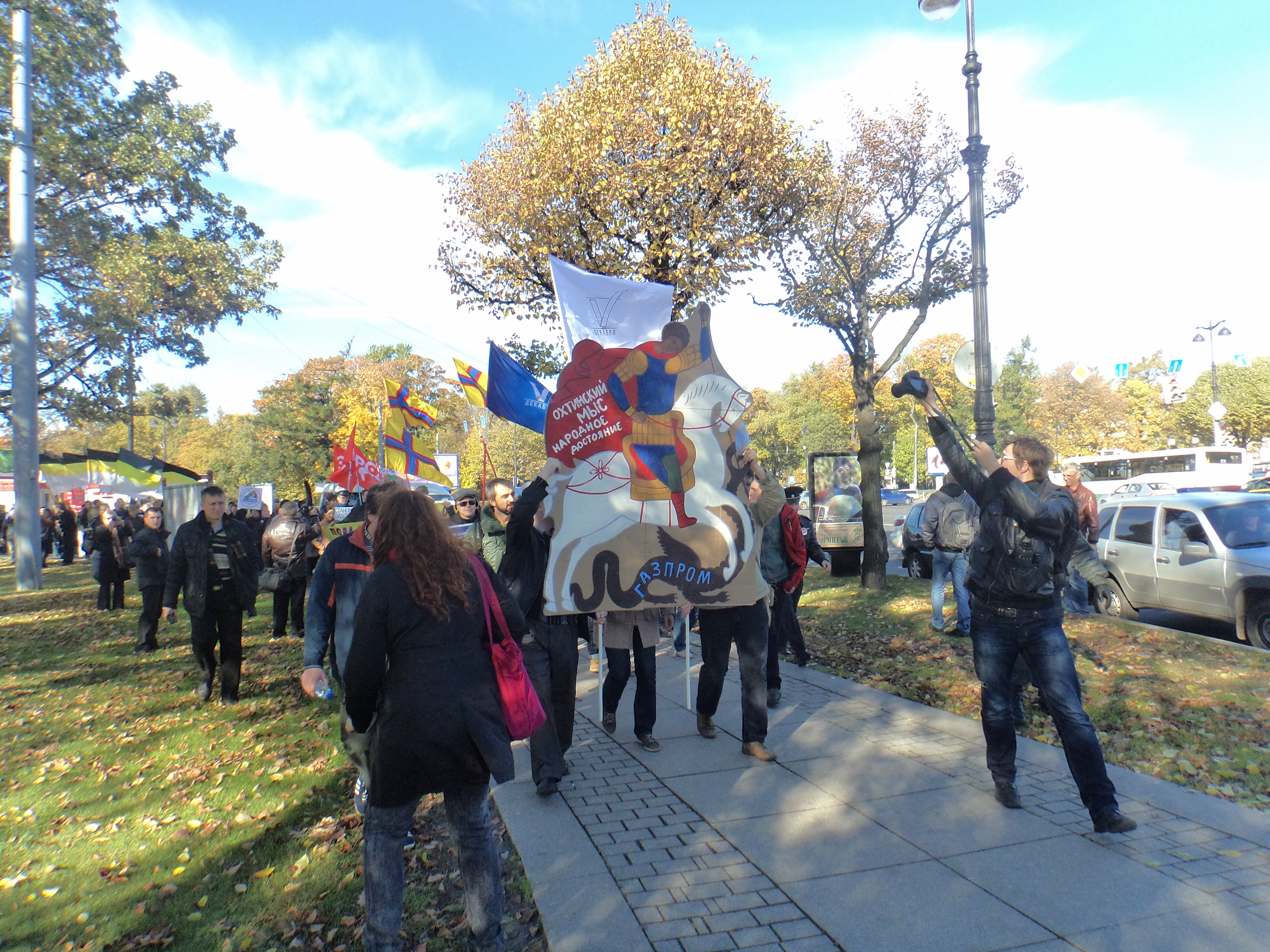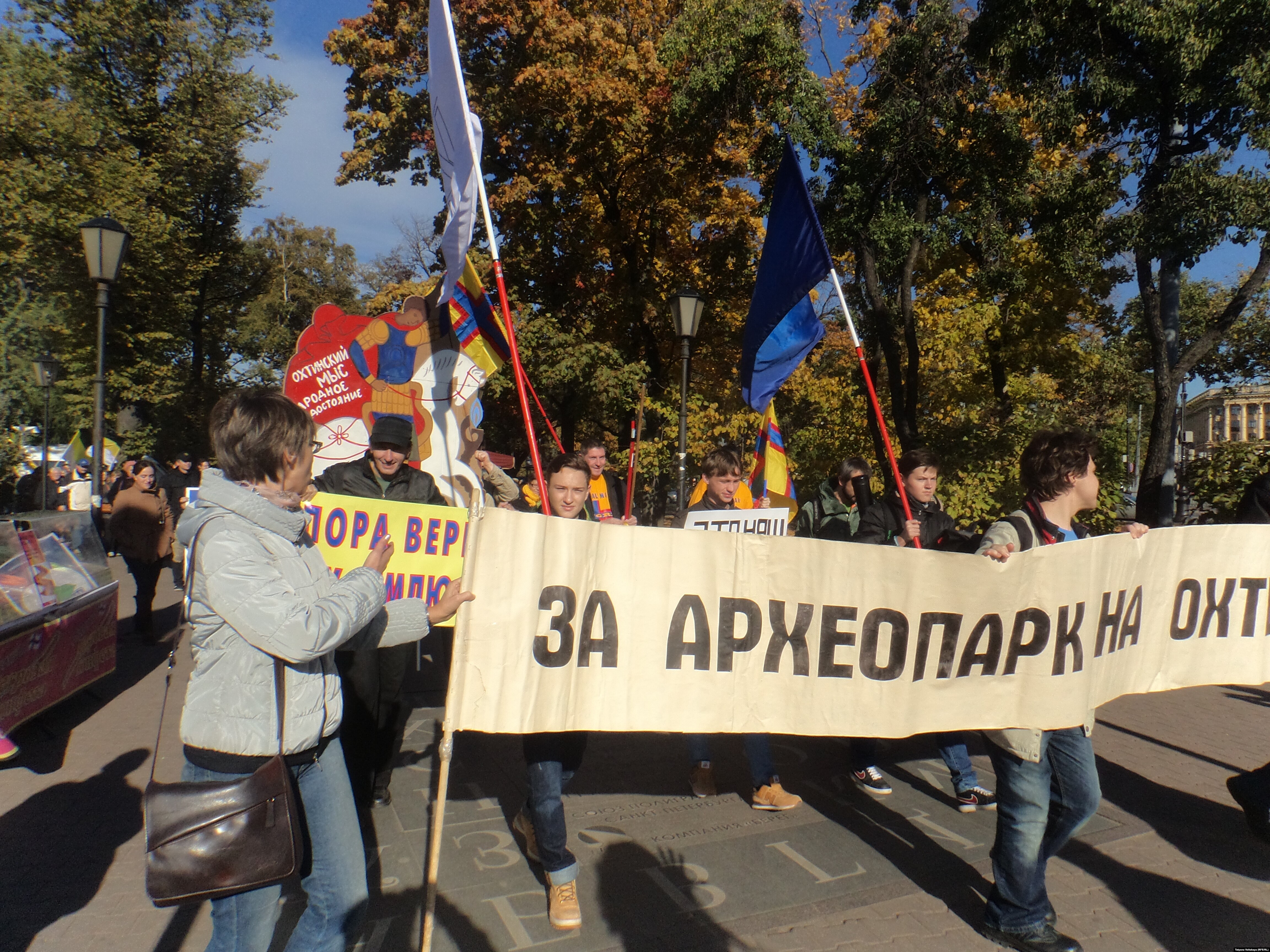 "За археопарк на Охте!" – такие слова были написаны на растяжке впереди колонны Марша за сохранение Петербурга. Возможное уничтожение ценнейших археологических находок на Охте возмущает петербуржцев. Первоначально марш хотели сделать более масштабным – пройти от Большого концертного зала "Октябрьский" по Литейному и Мойке, с тем чтобы устроить митинг на Конюшенной площади, но власти согласились только на усеченный вариант шествия – от метро "Горьковская" через Троицкий мост на Марсово поле. Это устроило не всех защитников города – часть из них предпочла выстроиться в одиночных пикетах на Невском проспекте с плакатами, на которых обозначены "горячие" точки – то есть дома, которые вот-вот могут снести. Остальные все-таки пришли к "Горьковской" с плакатами "Руки прочь от нашей истории", "Охтинский мыс – народное достояние!", "Против застройки Гавани", "Это наш город!".Хотя Марш в защиту Петербурга уже стал традиционным, но в этом году у него образовалось сразу несколько новых серьезных поводов. Во-первых, активизировались действия чиновников по осуществлению плана реконструкции центра города, этот план грозит не только потерей многих памятников и разрушением исторической среды, но и выселением коренных петербуржцев на окраины, поскольку в существующих проектах никак не прописаны гарантии возвращения собственников жилья в свои квартиры после капитального ремонта домов. Тревога по поводу этой проблемы прозвучала на митинге в выступлениях депутатов – Бориса Вишневского и Алексея Ковалева. Во-вторых, власти так и не расстались с мыслью застроить Охтинский мыс, где сделаны уникальные археологические находки, названные специалистами "Русской Троей", так что остатки древних крепостей могут погибнуть под ножами бульдозеров. И, наконец, несмотря на громкие заявления губернатора Георгия Полтавченко о том, что на снос исторических зданий будет наложен мораторий, сносы в последнее время участились, причем все попытки привлечь девелоперов к ответственности через суд заканчиваются победой нарушителей закона.