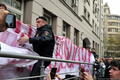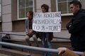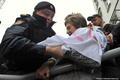 У Замоскворецкого суда были задержаны участники акции в поддержку Косенко, передает корреспондент "Граней". Около 16 часов полицейские задержали несколько человек за то, что они вместе с другими собравшимися скандировали "Свободу!". Когда стало известно, что приговор обвинительный, активисты растянули на ступенях суда два баннера и зажгли файер. Один участник акции приковался к перилам у входа, полиция разрезала цепь. Всего были задержаны восемь человек, пятерых из них оставили на ночь в полиции.