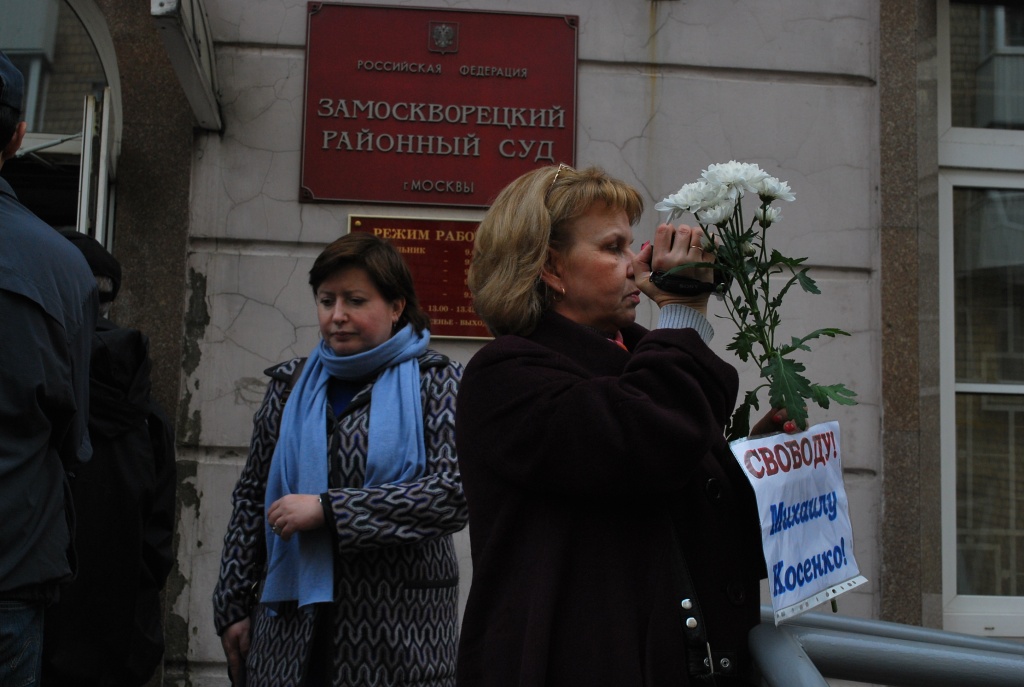 8 октября Замоскворецкий суд Москвы признал Михаила Косенко виновным по двум статьям: «участие в массовых беспорядках» на Болотной площади 6 мая 2012 года и «применение насилия к представителю власти». Судья отправила Косенко на принудительное лечение в психиатрическую больницу. Поддержать «узника Болотной» пришли почти 1000 человек, около десятка из которых были задержаны полицией. О том, что происходило в суде и вокруг него — в репортаже The New Times
