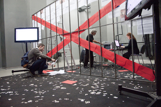 — На самом деле проект «Зоопарк художников» был задуман куратором Федором Павловым-Андреевичем как оммаж тайваньскому перформеру Тейчину Сье, прославившемуся своим live performance в галерее, где он провел 365 дней за решеткой. Этим перформансом Сье довел перформанс до логического конца. Каждый из обитателей «Зоопарка» должен был просидеть в своей клетке 28 часов (по 4 часа в день). Обязательным условием участия в проекте являлось физическое присутствие художника, а также неосведомленность участников проекта относительно работ других художников. Нашей задачей было предложить, не нарушая основные условия проекта и, более того, приняв его за некую данность, совершенно иную, альтернативную модель live performance, которая преодолевает сложившуюся на сегодняшний день схему перформанса-проживания и «страдательную» форму перформанса. Таким образом, мы создали, а точнее, инициировали создание нематериального продукта общения через интернет и затем материального, распечатывая листовки и проецируя тексты и видеообразы участников мультичата на экраны плазменных панелей. В процессе перформанса в течение семи дней наша Клетка наполняется коллективной энергией высказываний десятков участников. Пространство социальной сети (Facebook), в которой мы общались с участниками нашего проекта, ощутимо присутствует в ограниченном решеткой пространстве камеры или клетки, преодолевая нашу насильственную изоляцию. И вообще, что такое решетка, какие ассоциации возникают, когда мы ее видим? Значение самого слова так и не удается уловить, сформулировать, словно «прутья разделяющей нас решетки», перефразируя образную речь Пауля Целана, отделяют нас, затерянных в лабиринтах «решетки языка», от тех, с кем мы хотим и — более того — ДОЛЖНЫ говорить об этом. На самом деле предложенная метафора клетки как нельзя лучше соответствует реальному состоянию современного художника, чья деятельность попадает во все более явную зависимость от культурных институций, которые, с одной стороны, способствуют созданию культурной ситуации, а с другой, жестко регламентируют каждый шаг художника, навязывая собственное представление о том, каким должно быть современное искусство. В рамках институционального пространства и кураторского диктата любой самый трансгрессивный и критический жест превращается в зрелище среди прочих зрелищ. И самый «крутой» художник неизбежно становится ярмарочным персонажем. Нередко то же самое происходит с активистским и политизированным искусством. Естественно, художники ищут выход из такого положения. Что касается нас, то в данном случае мы обратились к еще мало исследованным возможностям социальных cетей, к WWW, Всемирной паутине, телекоммуникационной сети, представляющей собой своего рода модель, некое подобие жизни и, более того, человеческого тела, многих тел (сколь бы кощунственной такая мысль ни казалась). Эта невидимая, но неоспоримо существующая сеть в определенном смысле является произведением искусства, так как в ее существовании соединяются природное и культурное. И мы (в данном проекте как художники-перформеры) хотели и хотим участвовать в ее жизни и способствовать ее развитию, делегировав свои тела как некоего номадического «кентавра», который выступает то как символ, то как миф. Это — к проблеме телесности (в перформансе) и ее пер