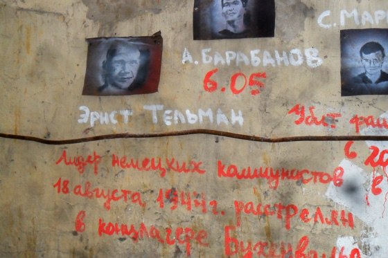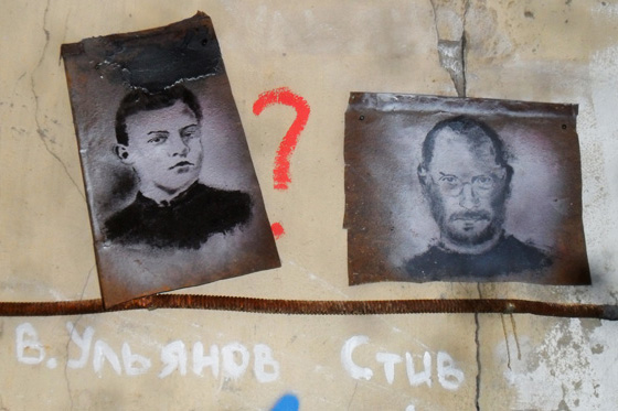 — Повторю, может, я многого от них требую, хотя молодогвардейцам, например, было не больше лет. По итогам нашей очень продолжительной беседы я попросил их каждого в отдельности прислать мне имена людей, с которыми они солидарны. Причем изначально я их никак не ограничивал — это мог быть человек или из истории, или из их личного окружения, или из нашего настоящего. В итоге я получаю Стива Джобса, Нагарджуну, Ларса фон Триера. Был, правда, Агамбен, но тоже непонятно, что значит быть солидарным с Агамбеном. Человек, который прислал Агамбена, насколько я знаю, никак активно не участвовал в антифашистском движении, не отстаивает права мигрантов. Я ужасно разозлился и решил не рисовать всех этих персонажей, потому что есть гораздо более близкие и серьезные проблемы, нарисовал узников 6 мая — не всех, потому что пришлось бы рисовать очень много, — и перемешал их с другими персонажами: Ульяна Громова, Эрнст Тельман. Нарисовал молодого Ленина вместе с Джобсом и поставил между ними вопросительный знак, чтобы, глядя на эту стену, они хоть о чем-то задумались. Я уверен, что большинство из них скажет «Джобс», но, по крайней мере, это уже будет более осмысленный выбор. Изначально я хотел их спровоцировать, а может, и научить, заставить думать.