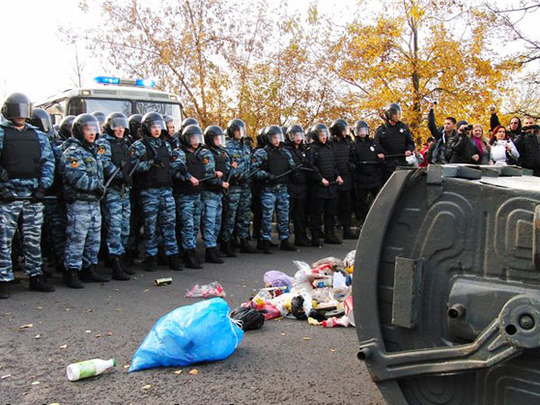 Дмитрий Демушкин «Сразу скажу, наши люди действительно были. Мы собрали порядка 200 человек, но никто из националистов не был задержан. И никто не участвовал в столкновениях. Так вот, четырех местных жителей задержали, люди перекрыли улицу, чтобы не дать выехать автобусу с ними. Граждане начали ломать дорожные знаки, разбили стекло автобуса… Были столкновения с ОМОНом, который пытался оттеснить граждан. Автобус развернули», — рассказал Демушкин.