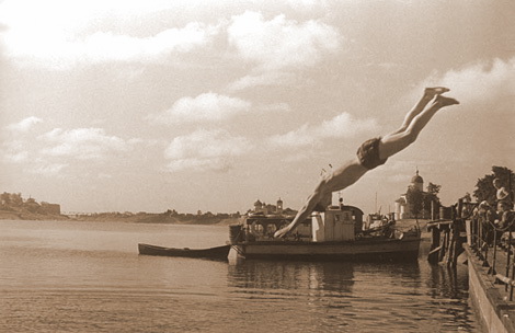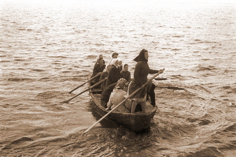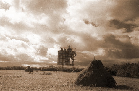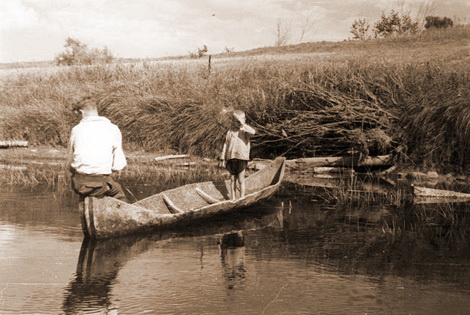 Фанерный макет будущего памятника Александру Невскому в натуральную величину, речные лодки и их отражения, рыболовецкие суда... Коромысло, мётлы, тазик… Нехитрое хозяйство, живые эмоции. Поток коз на деревенской улице, подъёмный кран возле строящегося главного корпуса пединститута…