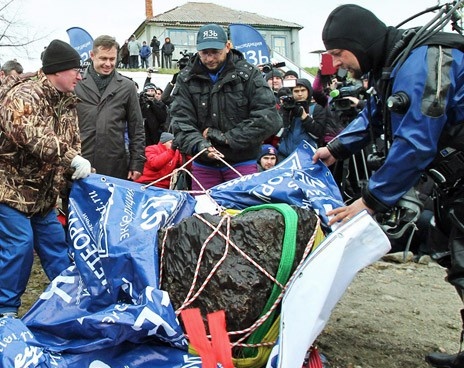 | Почти 600 килограммов составил вес самого крупного осколка метеорита, поднятого со дна озера Чебаркуль в Челябинской области. Правда, оценка весьма относительна: точный вес измерить не удалось – весы сломались. Научным группам пришлось устроить соревнование: одни говорили «100 кг», другие – «тонна», третьи – «500 кг». Тем временем вице-премьер РФ Дмитрий Рогозин уже собрался защищать планету и бороться с непрошеными гостями из космоса. |