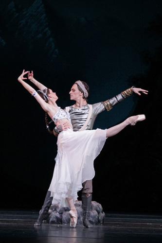 © А. Клюшкина / МАМТ Сегодня же включенная в репертуар Музтеатром Станиславского и Немировича-Данченко «Баядерка» Натальи Макаровой смотрится адаптированным изданием хрестоматийной классики, пособием по иностранному языку, превращающим толстенный талмуд в 80-страничную брошюрку: выкинуты целые главы, сложные для понимания неофитов слова заменены более простыми аналогами. У Петипа конструкция балета была простой и близкой к гениальности: нарастающий темп буйных, пылких «индийских» сцен (встреча баядерки Никии с Солором, решение раджи женить Солора на своей дочери, решение убить Никию и ее приходящаяся на разгар праздника смерть) обрывается меланхолией «Теней», где призрачные девы сходят с гималайских гор. Это — сон Солора; с его пробуждением «Тени» уступают место цветастым танцам, обрываемым «гневом богов» — землетрясением, которое разрушает дворец раджи и погребает всех под его обломками. Редактируя балеты Петипа, важно соблюсти баланс: мало couleur locale — страдают и «Тени», уменьшается контраст. Именно это и происходит в версии Натальи Макаровой, вымаравшей ключевые характерные номера балета — «Индусский танец» и вариацию Ману. Макарова в прямом смысле сглаживает перепады рельефа «Баядерки»: изгибающийся пандус, с которого в картине «Тени» у Петипа змейкой сходят девушки, заменен на невысокую наклонную подставку без изгибов, а выразительные мрачные скалы — на невзрачный зеленый сад. Величественное шествие с небес на землю превращено в обыкновенную прогулку, эффект от мистического явления идеального белого балета в повседневной суете земного мира сведен на нет.