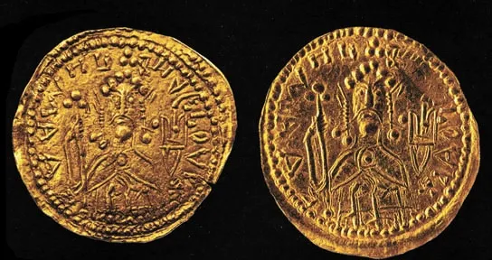 Завершающая же часть книги вполне могла быть выпущена и отдельной научной монографией, и научно-популярной книжкой. Она называется «Становление Руси: пространство и власть». Одна ее глава посвящена торговым путям в Восточной Европе и торговым связям Руси с остальным миром (глава А.Е. Леонтьева и Е.Н. Носова). Другая глава представляет собой сумму современных знаний об очень редких первых монетах Русского государства, златниках и сребрениках Владимира, Святополка и Ярослава. Этот интересный и самый полный на сегодняшний день обзор вместе с В.А. Калининым написал замечательный нумизмат и сфрагист П.Г. Гайдуков, заместитель директора Института археологии. Еще одна яркая глава сборника посвящена эволюции княжеских знаков Рюриковичей, один из которых стал малым гербом современной Украины. К сожалению, эта глава — посмертная публикация А.А. Молчанова (1947-2010).