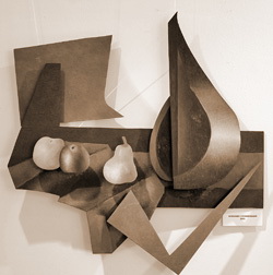 Издали работа может казаться плоской, но если подойти поближе, то обнаружится глубина. Глубину можно измерить линейкой.