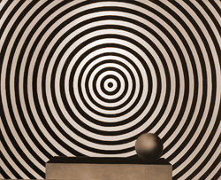 Взять хотя бы его «Пульсирующую спираль». В отличие от ярких работ Иванюка, она черно-белая. Это вполне могло бы быть обложкой какого-нибудь эмбиент-альбома [ 2].