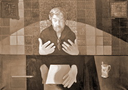 На открытии псковской выставки витебский художник стал рассуждать о поисках новой формы. Ему интересны неочевидные вещи. Ему интересно то, что скрыто. Невидимое, но находящееся где-то рядом.