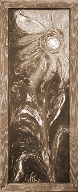 Такой сдвиг отчётливо ощущается в работе «Цветок кричащий» Любови Желтышевой. Цветок действительно кричит (зовёт на помощь?).