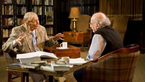 © Пресс-служба Первого канала У них у всех так — если жизнь остановилась за двадцать, за тридцать лет до интервью, то интервью всегда будет таким, и самые интригующие, самые увлекательные вещи будут звучать вот так — никак. Даже ссора с Бродским, которой посвящена вся третья серия и о которой уже все что-то пишут (сразу после эфира в Фейсбуке фанаты Бродского стали, конечно, писать, что никакого письма в Квинс-колледж не было и Евтушенко все придумал), — даже она ведь не имеет уже значения, было и было, все равно все останутся при своем, и даже Соломон Волков, рассуждающий за кадром, что «Евтушенко — поэт для народа, а Бродский — для элиты», не раздражает; о «народе» и «элите» сейчас и без него говорится столько глупых и грубых слов, что на их фоне и Бродский, и Евтушенко, как их голоса при монтаже, сливаются в один незнакомый голос поэта, который был когда-то, а теперь его нет.