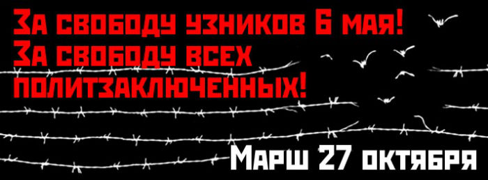 27 октября в 14:00 в Москве на Пушкинской площади начнется марш в поддержку узников 6 мая и всех политзаключенных России. Его участники пройдут по бульварам по Тургеневской. Акция согласована с городскими властями.
