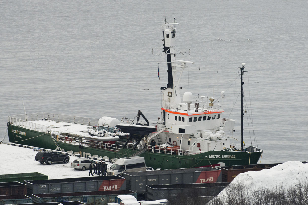 Ледокол Arctic Sunrise все еще под арестом. Мурманск. 24 октября 2013 г.