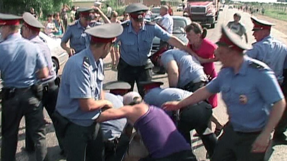 Задержание жителей Пугачева, пытавшихся перекрыть трассу Саратов—Самара. 9 июля 2013 г.
