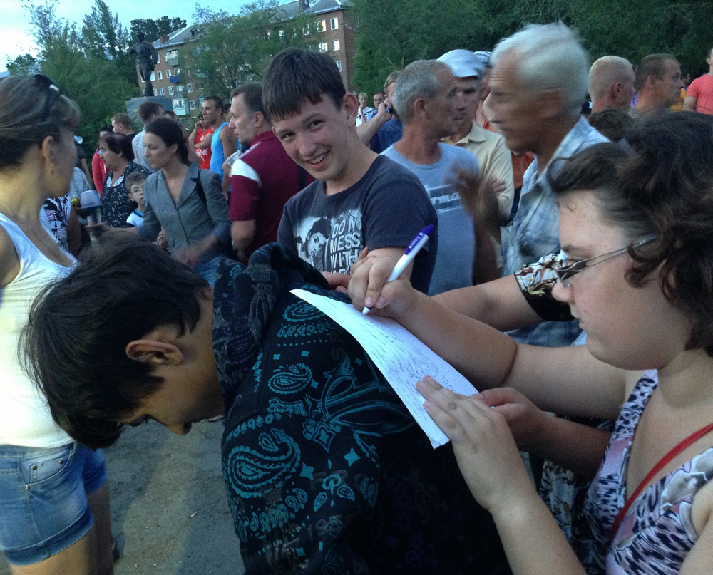 Сбор подписей за выселение из Пугачева лиц чеченской национальности. 9 июля 2013 г.