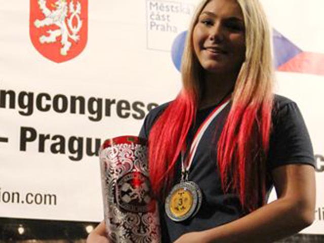 Россиянка Марьяна Наумова в возрасте 14 лет завоевала серебряную медаль во взрослой категории на чемпионате мира по пауэрлифтингу, который проходит в эти дни в Праге.