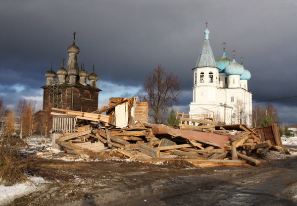 Судите сами. В Заостровье чудом уцелел дом протоиерея Феодора Михайловича Тамицкого, настоятеля Заостровского прихода с 1914 по 1930 год. В 1930 году отец Феодор был арестован и отправлен в концлагерь под Сыктывкаром. В 1933 году его расстреляли, а семью выселили. Когда о. Иоанн Привалов появился в Заостровье, он постарался вернуть Заостровскому приходу два дореволюционных здания: церковно-приходское сельское училище и дом отца Феодора Тамицкого. За двенадцать лет пользования этим домом прихожане не решились сделать в нем реконструкцию, помня, что его стены хранят тепло рук отца Феодора. Небольшие переделки касались крыши и поздней пристройки. Дом был крепкий, ни одного гнилого бревна. И вдруг неожиданно, уже после разгона общины о. Иоанна Привалова, дом разрушают. Почему? С какой стати?