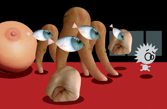 Инсталляция «Белые ночи» Франсуа Шале В отличие от Фогта Франсуа Шале как раз очень любит именно современные технологии — и использует их по полной. Он не только делает сюрреалистические компьютерные видеоклипы, но и создает разного рода странные инсталляции. Например, «В голове монстра» — это каучуковая статуя с двумя плазменными мониторами — глазами монстра, через которые зритель видит улицы города и людей. Круглые экраны-глаза сужаются до щелок и снова расширяются, передавая эмоции персонажа, который бредет по городу, спускается в метро, садится в поезд…