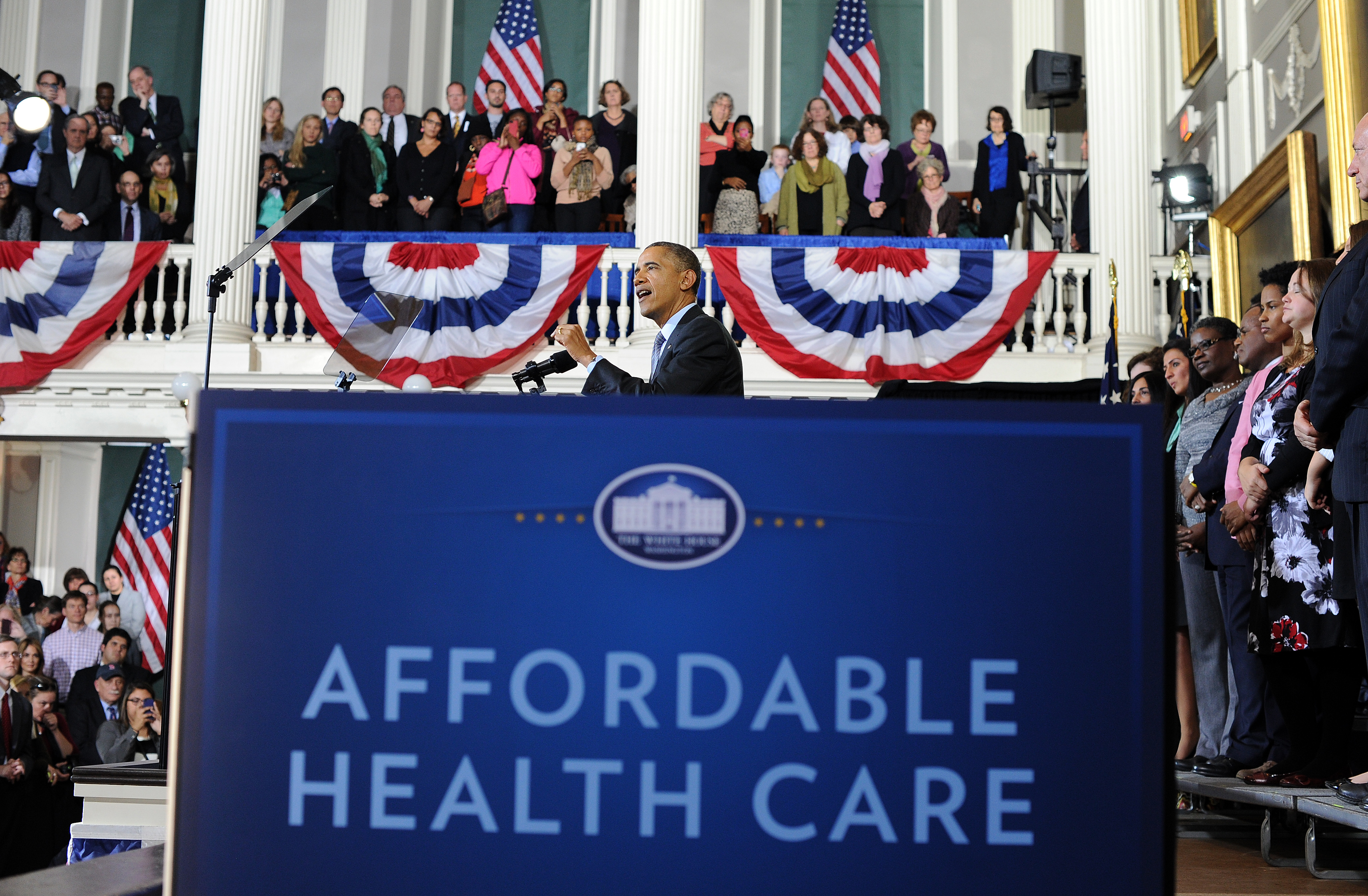 Запуск интернет-биржи, где страховые компании должны были предложить свой товар незастрахованным американцам, потерпел фиаско. В первый день ее работы лишь шесть человек смогли заключить договоры на покупку страхового полиса. Для десятков тысяч людей сайт, на организацию которого были затрачены сотни миллионов долларов, оказался недоступен. За первыми сетованиями на временные трудности последовали объяснения президента о том, что эти трудности вызваны интересом к сайту, что доказывает популярность продукта. Однако проблемы оказались не кратковременными. На слушаниях в Конгрессе представители компаний, работавших над сайтом, сообщили, что Белый дом слишком торопил с запуском электронной биржи, они заявили, что не было проведено ее тестирование. Через несколько недель президент Обама сдался и призвал американцев отказаться от попыток войти на сайт, а вместо этого звонить в специальные центры, где оформление страхования не должно занять больше 25 минут. Полное вступление в строй электронной биржи было отложено до 1 декабря.