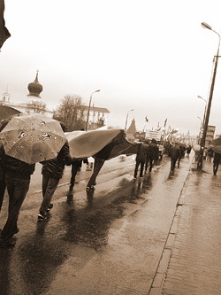 Дождь, как и митинг, не прекращался, но народ уже медленно расходился, обсуждая лозунг «Русских вернуть в Кремль!», который наводил на скользкую мысль о том, кто же тогда Путин?