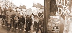 Под «Смуглянку-молдаванку» колонна русских националистов промаршировала мимо кинотеатра «Октябрь».