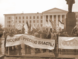 «Как? Ещё один «Русский марш?» А что же тогда было до этого?». 4 ноября 2013 года не всем, оказавшимся в полдень на площади Ленина в Пскове, было понятно, что же происходит. Только что возле памятника Ленину завершился митинг с лозунгами «Сохраним Русских – сохраним Россию!», «ЛДПР – Порядок! Остальное – Хаос!», «За Россию! За Русских! За ЛДПР!». Непонятливым разъясняли, что сейчас за сохранение русских агитировали жириновцы, а русские будут агитировать за русских через полчаса.
