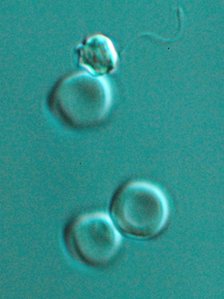 Фото: University of Edinburgh Используя высокоскоростную голограммную микросъемку, исследователи получили трехмерное изображение движения мужской особи паразита в поисках женской. Выяснилось, что при помощи жгутика, аналогичного таковому у сперматозоида, мужская особь может двигаться в любую сторону, то есть имеет большую свободу передвижения, чем считалось ранее.