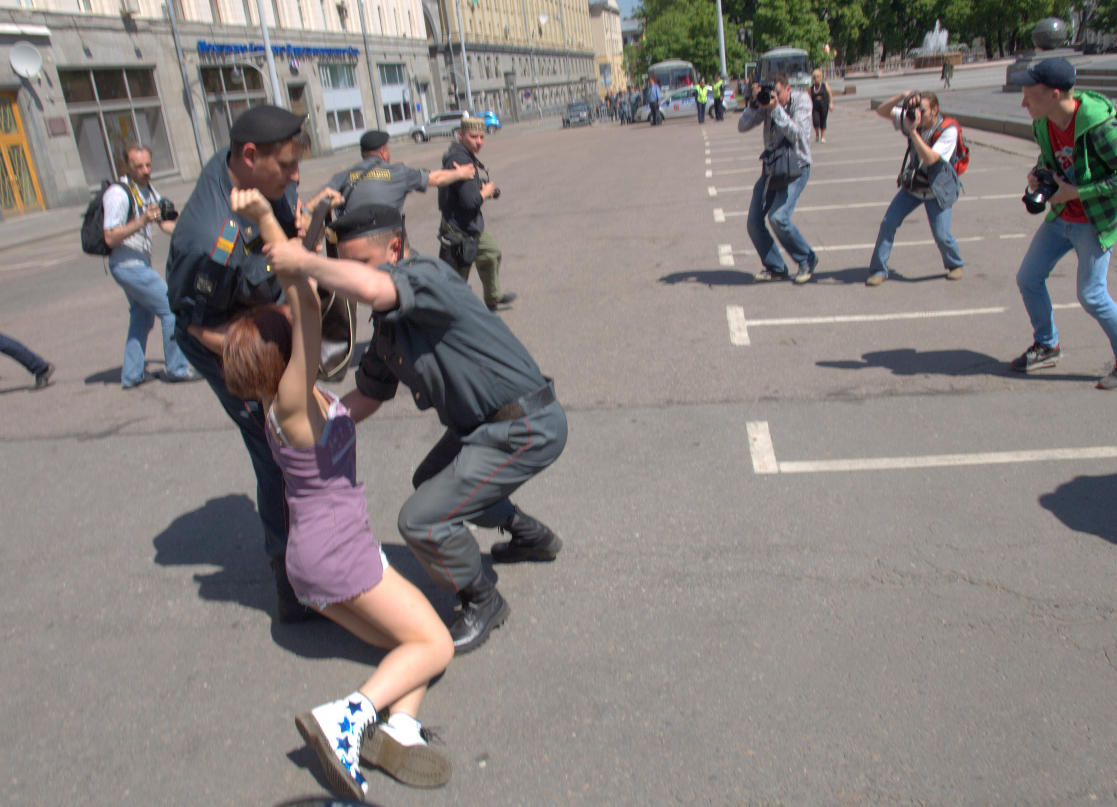 – Полиция реагирует достаточно спокойно. На прошлой неделе, когда начиналась эта серия пикетов, пикетчики стали не просто стоять с плакатиком, а начали сооружать конструкции на основе палочек и реечек и вешать на них громадный баннер. Тогда полиция стала нервничать, задавать вопросы, звонить начальству. Узнав о том, что никаких конкретный указаний на размер одиночного пикета в законе нет, они расслабились, – пояснил Василий Богатов.